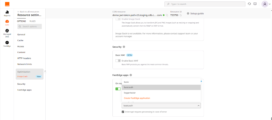 1. Switch to the CDN management part on Left menu, and select the CDN resource on which you want to apply the token.